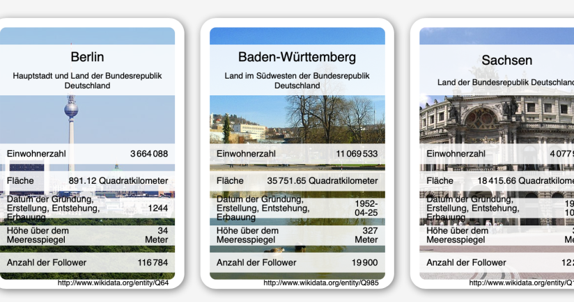 Wer kennt sie nicht, die Quartett-Spiele? Wir haben sie bereits in unserer Kindheit und Jugend gespielt und es gibt sie natürlich noch immer! Natürlich eignen sie sich auch für das Erlernen von Fakten – aber die Topgeschwindigkeit eines F-22 oder das Gewicht eines Flugzeugträgers ist vielleicht nicht besonders schulrelevant. Also selbst ein Quartett erstellen? Das ist in der Regel mit einem hohen Aufwand verbunden. Mit diesem Werkzeug geht es jedoch fast vollautomatisch und mit einer enormen Zeitersparnis! Der Wikidata Card Game Generator Unter cardgame.blinry.org finden Sie eine kostenlose Website, mit deren Hilfe Sie schnell Quartett-Karten erstellen und ausdrucken können. Das Besondere daran ist, dass die Karten automatisiert aus Wikipedia-Einträgen erstellt werden – das bedeutet, dass es auch einen Eintrag in der Wikipedia zu einem Thema geben muss. Eigene Karten zu Themen, die es in der freien Enzyklopädie nicht gibt, können Sie damit nicht erstellen. So funktioniert es Auf der Website des Wikidata Card Game Generators finden Sie eine englische Anleitung. Hier das Wichtigste in aller Kürze: Gehen Sie auf die Wikidata-Hauptseite unter wikidata.org/wiki/Wikidata:Main_Page.Geben Sie im Suchfeld das gewünschte Thema auf Englisch, z. B. „federal state of germany“Hinter der Überschrift des Eintrags finden Sie dann in Klammern eine Nummer, die mit dem Buchstaben „Q“ beginnt. Kopieren Sie diese Nummer in die Zwischenablage. Bei diesem Suchbegriff ist dies dann Q1221156.Fügen Sie diese Nummer in das Feld auf der Seite des Wikidata Card Game Generators ein und wählen Sie als Sprache German (de) aus.Klicken Sie auf Generate und nach einer kurzen Wartezeit werden die Quartett-Karten generiert und angezeigt.Über den Karten wird dann als Text Print them? angezeigt – damit können Sie die Quartett-Karten dann ausdrucken. Das sind die Einschränkungen So praktisch der Dienst auch ist – es gibt ein paar kleine Einschränkungen: Die automatische Extraktion der Daten aus den Wikipedia-Artikeln funktioniert