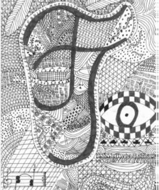 Zuerst zeichnen die Schüler die Umrisse ihrer Initialen, füllen diese mit Tusche und lassen das Blatt trocknen. Ab der nächsten Unterrichtsstunde zeichnen die Schüler die Muster von der Mitte der Grafik zu den Blatträndern, um ein Verwischen zu vermeiden. Beim Mustern sollten Lineaturen (z. B. Schraffuren, Karos) oder Punkte überwiegen, denn bei zu dunkel gestalteten Flächen wirken die Initialen nicht als Blickfang, sondern „verschwinden“ optisch. Kleine und wenige Details (z. B. Ziffern, Buchstaben) geben dem Gesamtbild eine individuelle und persönliche Note.